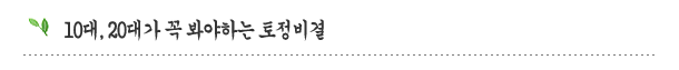 ÅäÁ¤ºñ°áÀº ¿¬·Éº°, Çö½Ç¹®Á¦º° ÁßÁ¡ÀûÀ¸·Î ºÁ¾ßÇÒ ¿î¼¼Ç®À̹ýÀÌ ´Ù¸£´Ù. ´ëüÀûÀ¸·Î ÅäÁ¤ºñ°áÀ» º¼¶§¿¡´Â